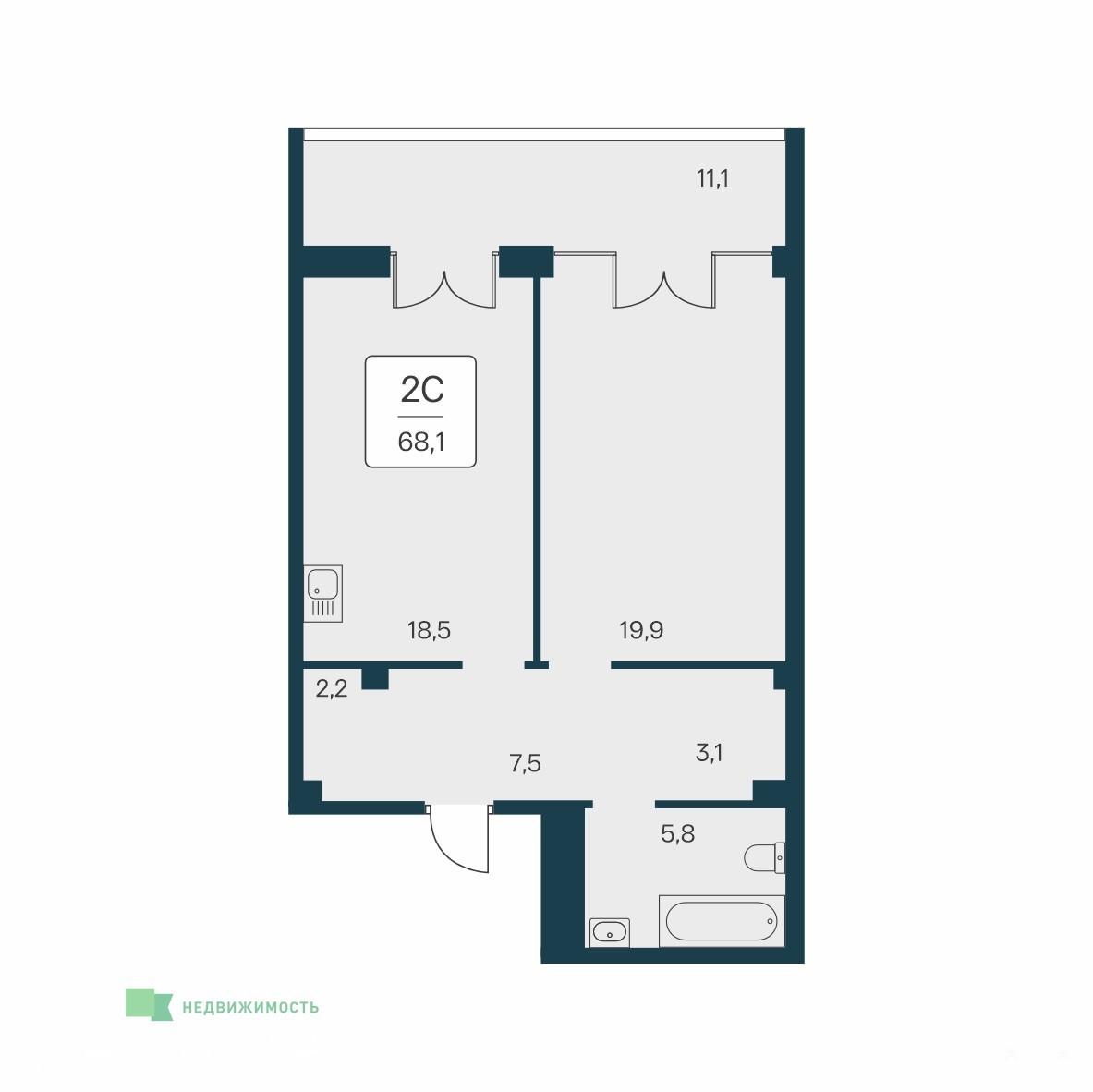 - 68 м²