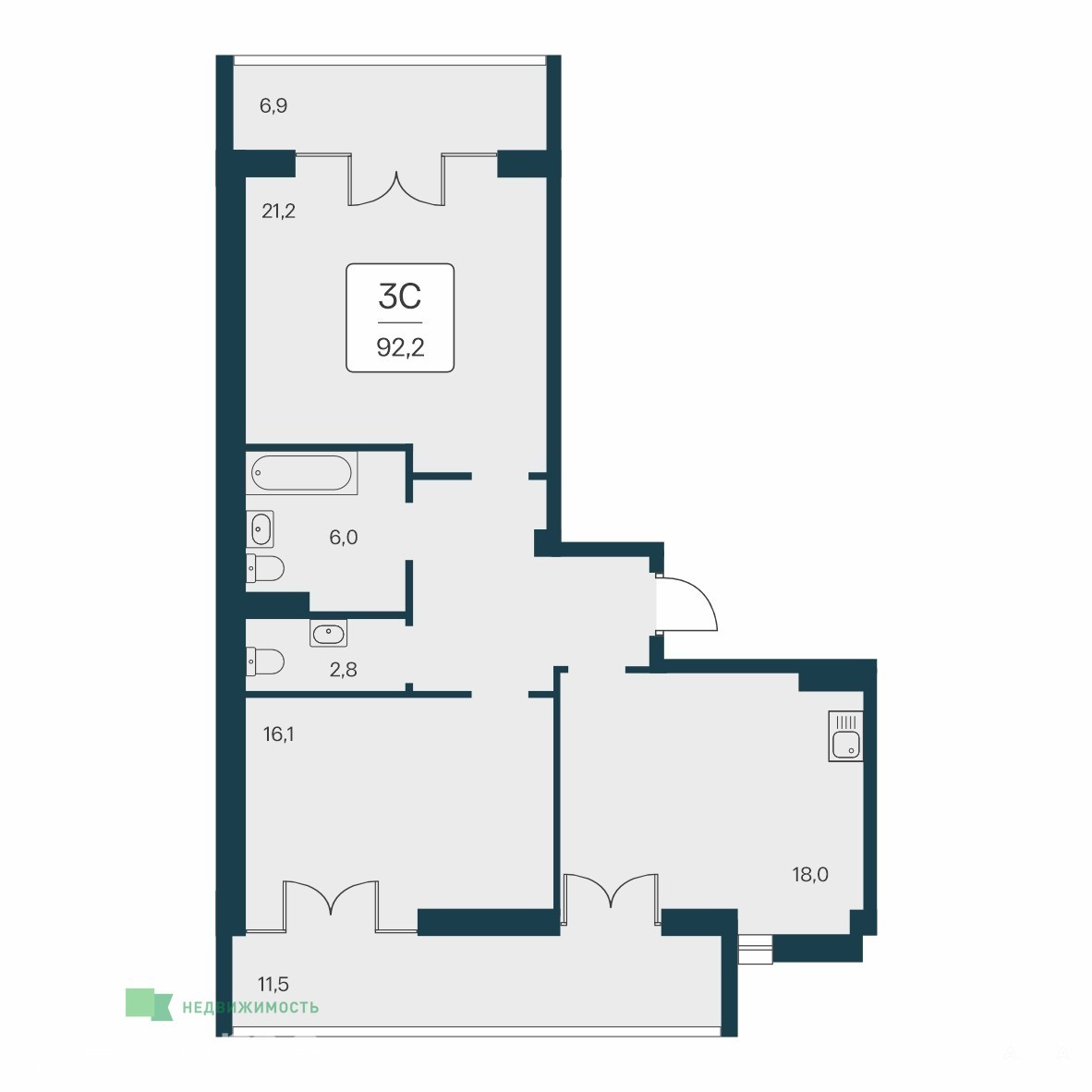 - 92 м²