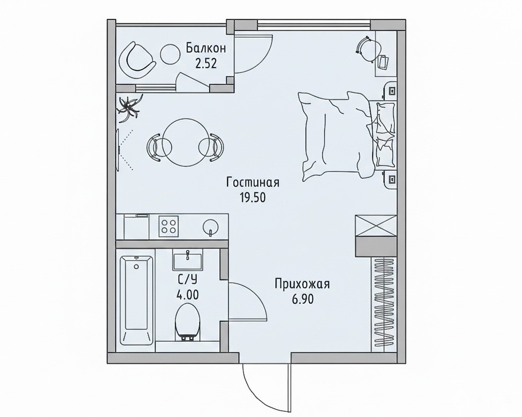 * Общая площадь объекта составляет 30, 5 м2;