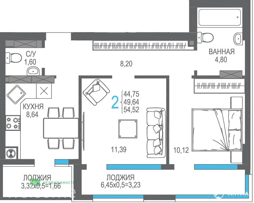 - 8.64 м²