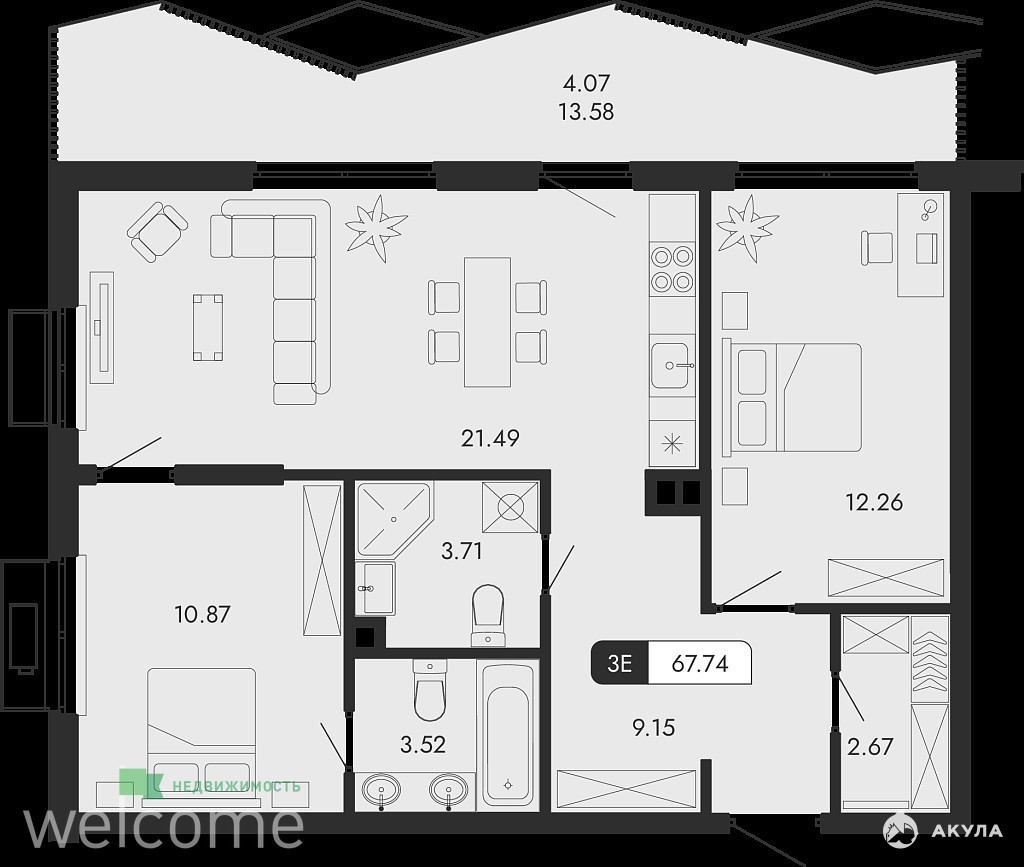 - 68 м²