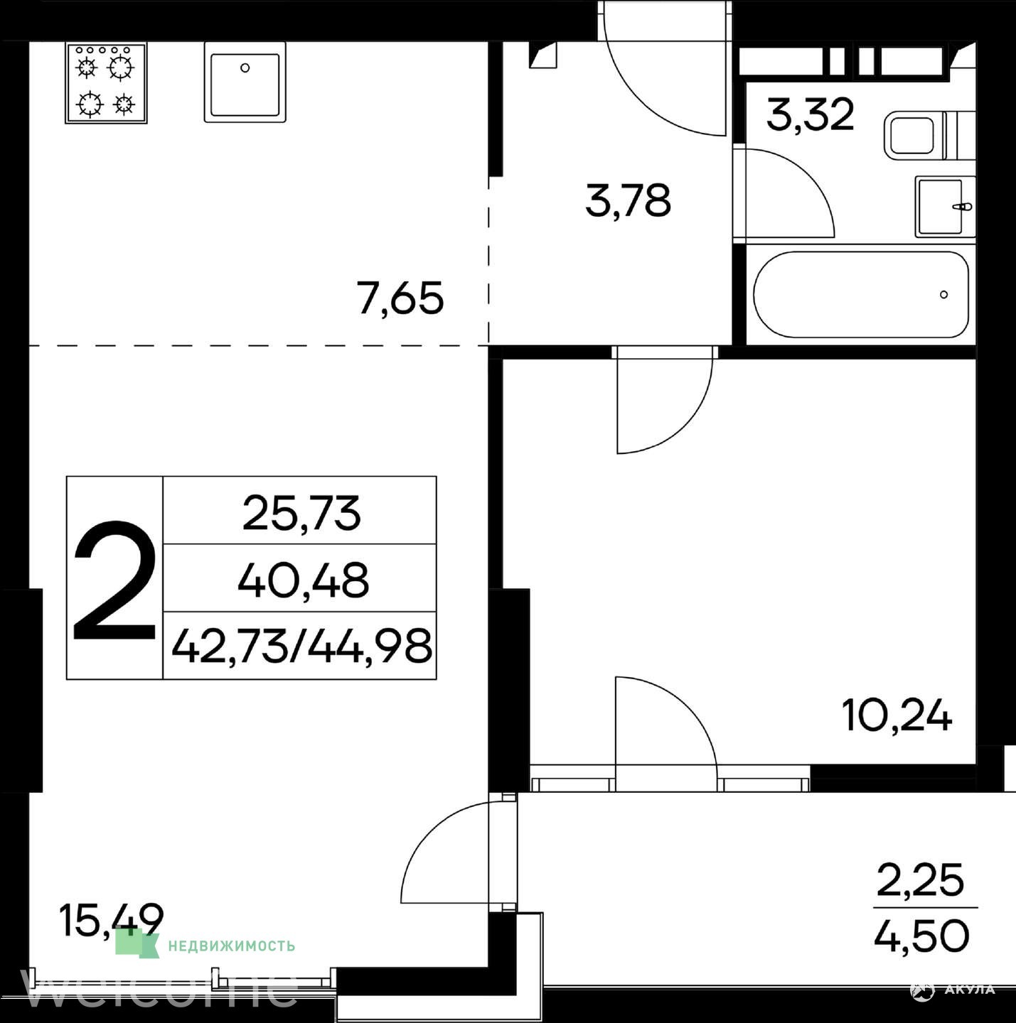 - 25.73 м²