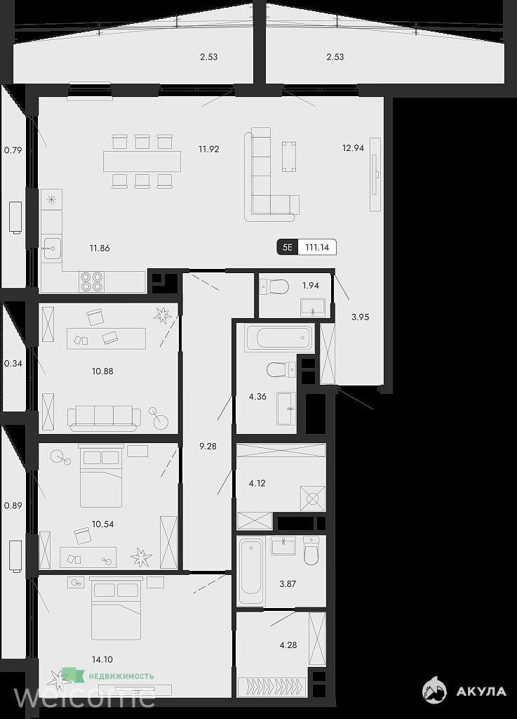 - 11.86 м²