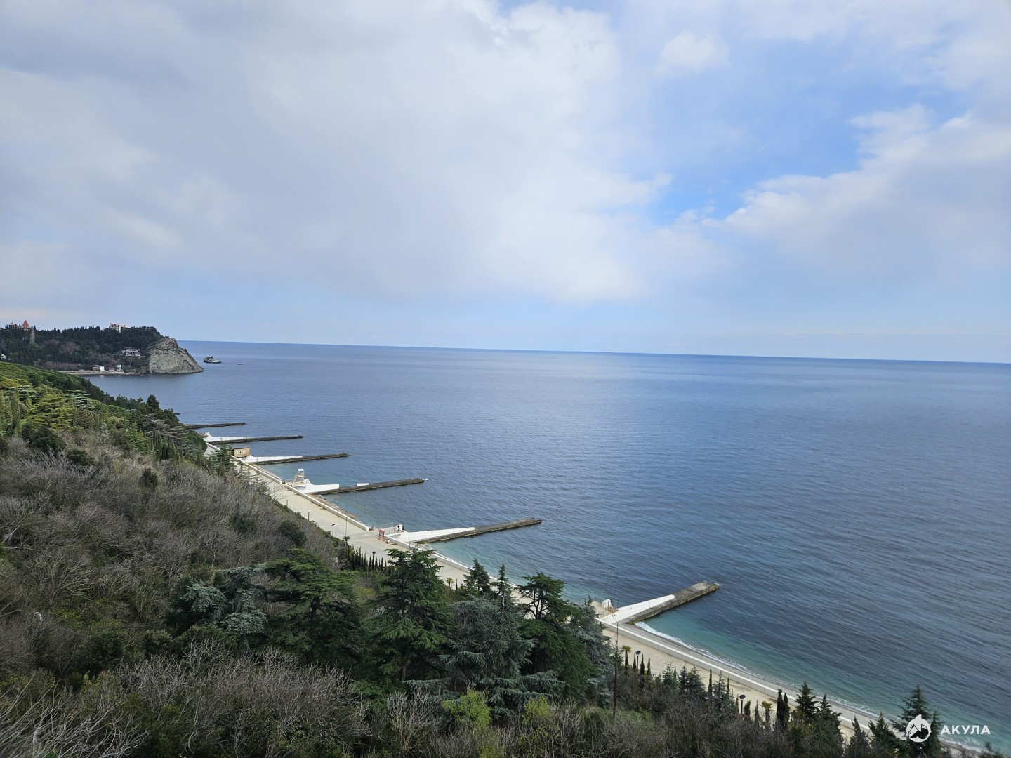 Собственная набережная на ЮБК. Прямой вид на горы и на море.
