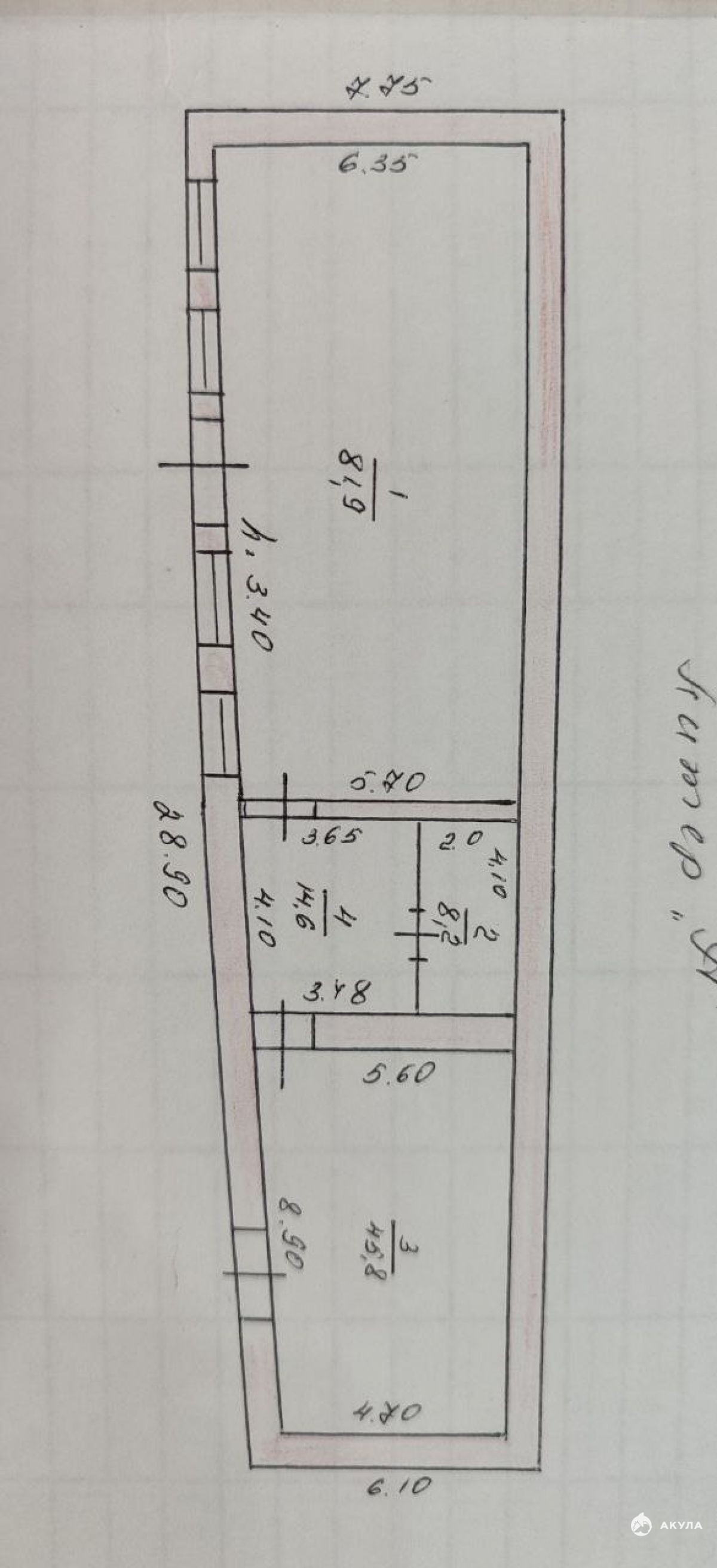 Здание площадью 150, 5 м2 Торговом зале высота потолка 3, 5 м в складском помещении 3, 2 высота потолка,
