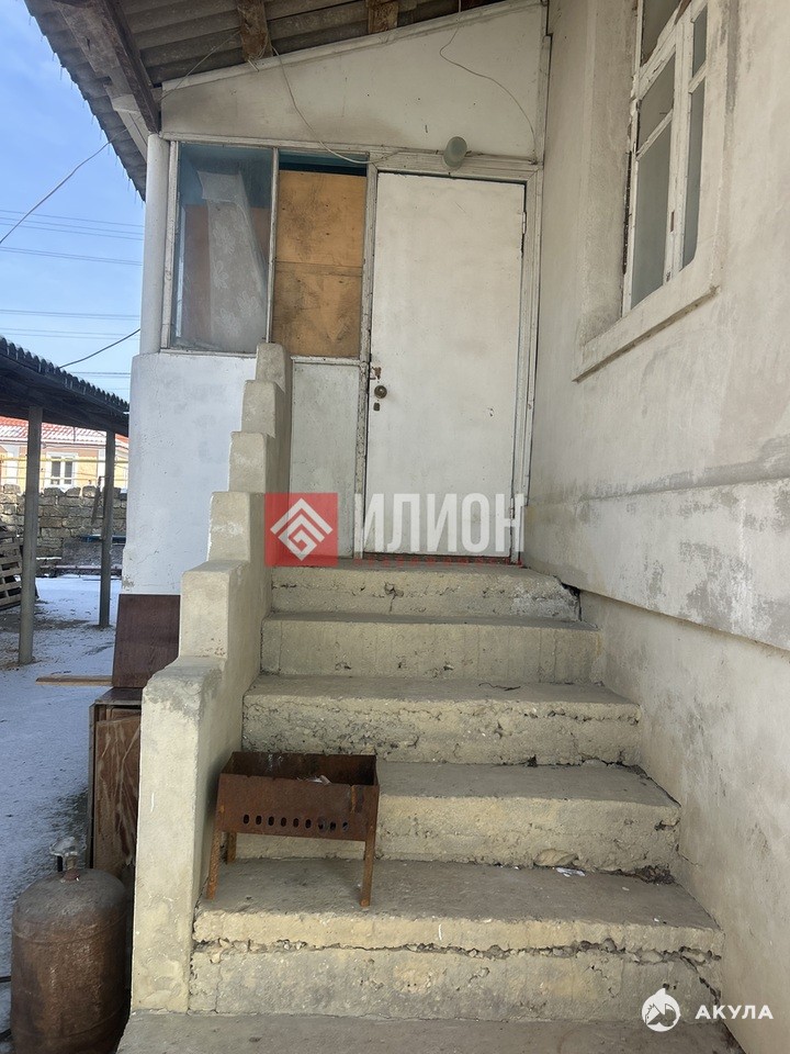 Продается дом в хорошем тихом районе села.Дом одноэтажный с хорошим видом на горы-4 комнаты есть летняя кухня душевая в доме санузел находится на улицеесть гараж и подвал весь двор забетонирован есть не большой огород Рядом есть все удобства, школа, детский сад, магазины, ходят регулярно автобусыДо моря 15 минут езды в доме есть свет и вода газ идет по границеДом без мебели , требует косметического ремонта