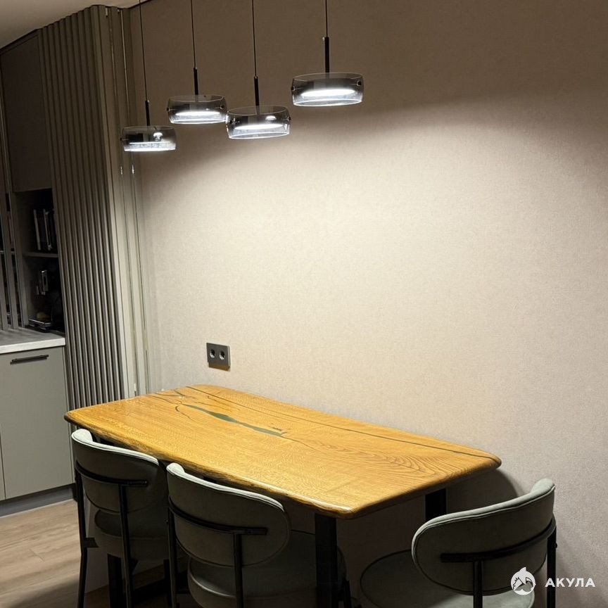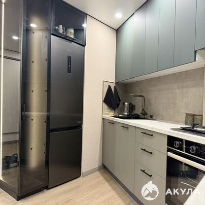 Кухня просторная и светлая, оснащена современной техникой, включая холодильник, посудомоечная машина и тд. Встроенные шкафы обеспечивают много места для хранения. Ванная комната совмещенная, оформлена в современном стиле с качественной сантехникой.