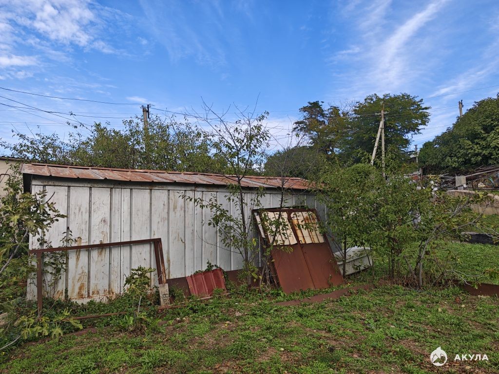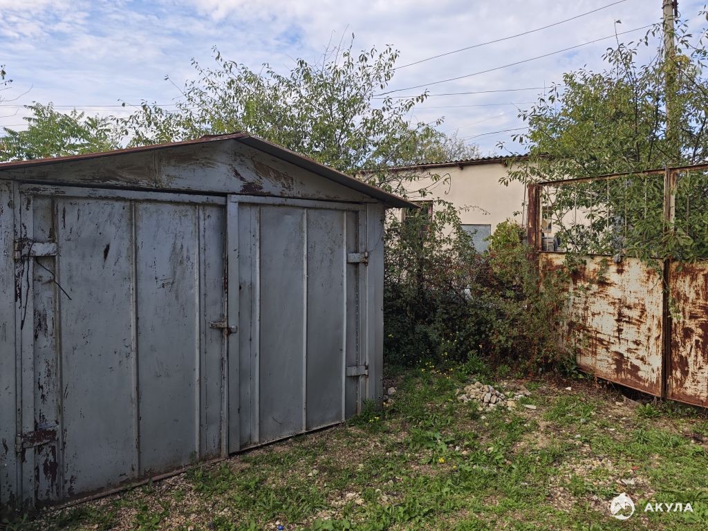 На участке расположен металлический гараж, можно использовать для хранения строительных материалов и инструмента