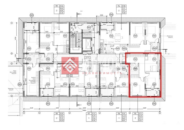 этаже, общей площадью 52, 7 кв.м
