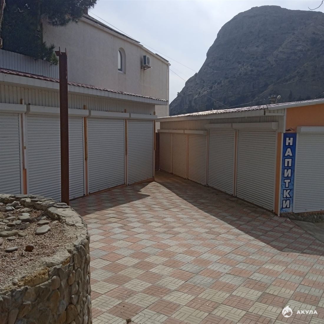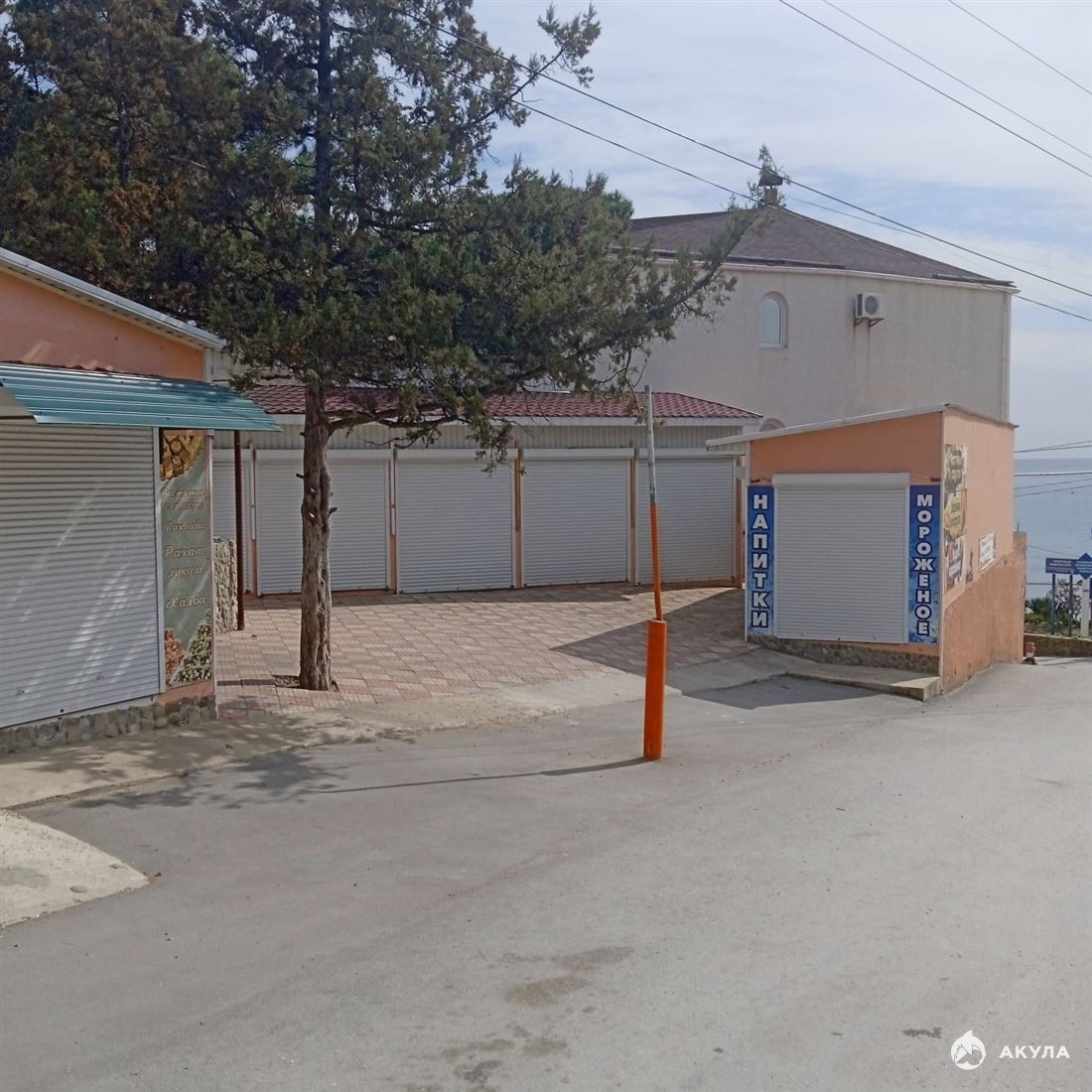 На участке размещено 17 шт. торговых павильонов от 4 м2 до 10 м2, имеют кадастровые номера; статус – нежилые. Все павильоны в отличном состоянии – заведено электричество (20 кВт, 3 фазы); установлены роллеты; ежегодно сдаются в аренду в летний сезон. Отличное предложение для бизнеса.